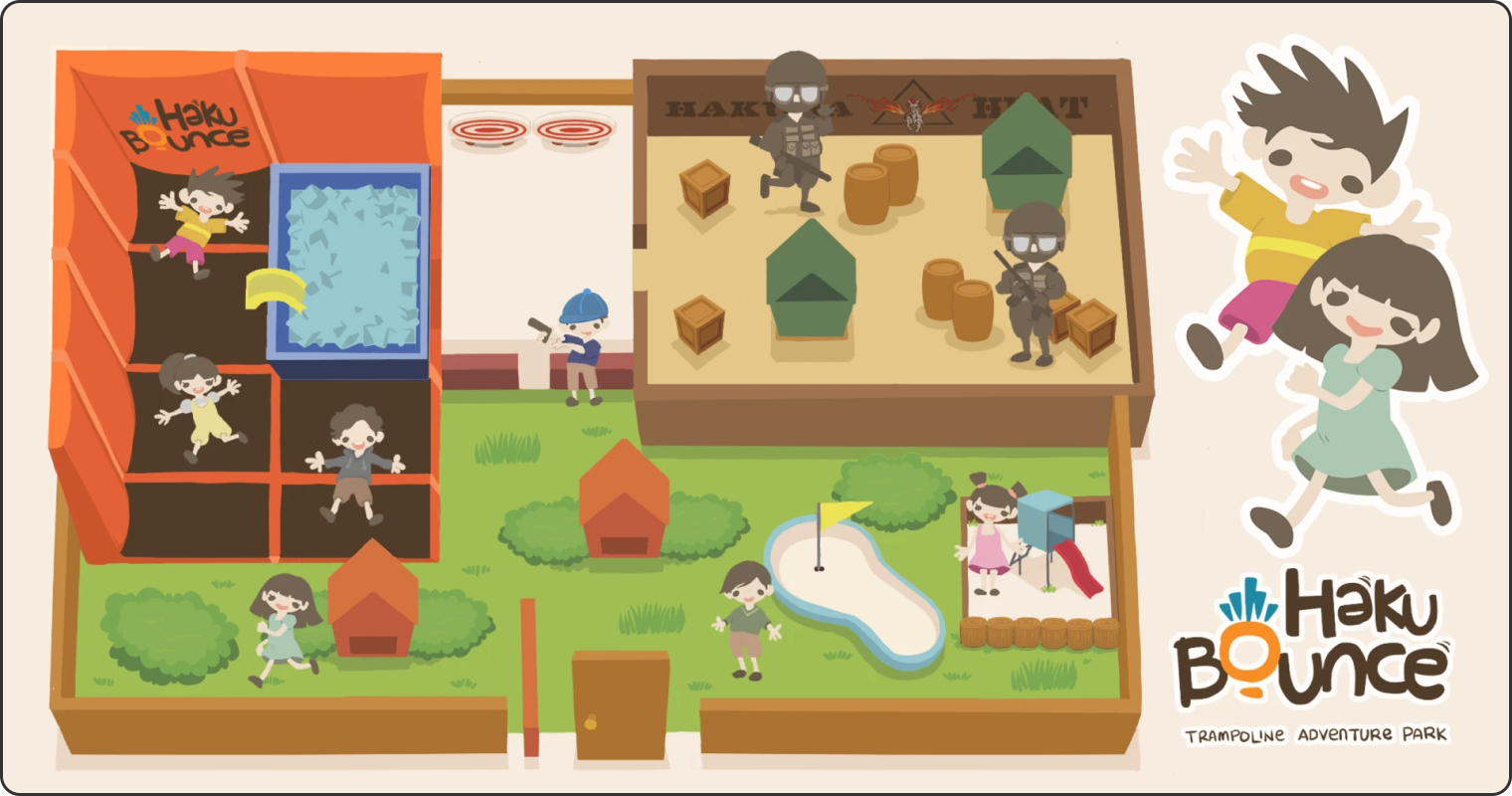 ハクバウンスが提供するアクティビティ・アトラクション等には危険性があり、利用することによって重傷、精神的な損傷、死に至る場合もあります。自分と他のお客様の安全の為、必ず施設のルールとスタッフの指示に従ってご利用願います。